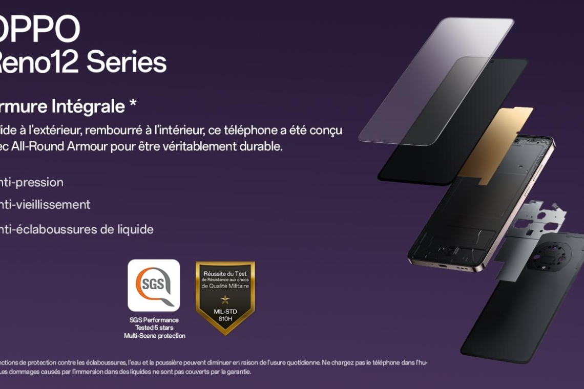 Lorsque les équipes de recherche et développement “R&D” d’OPPO ont entrepris de créer le Reno12, elles ont fixé un objectif ambitieux : préserver l'excellente sensation au toucher tout en garantissant une fiabilité inégalée. Bien sûr, du point de vue du développement du produit, ce n'est pas une tâche facile. Il semble y avoir une contradiction naturelle entre l'insistance de Reno sur le design fin et la fiabilité accrue. Après des mois d'efforts incessants, OPPO est fière de présenter sa solution sur Reno12 : l'armure polyvalente « all-round ». Cette dernière est le résultat des efforts collaboratifs de plusieurs équipes en science des matériaux, en chimie et en ingénierie. L'armure polyvalente « all-round » d’OPPO représente une avancée majeure. Chaque aspect du Reno12, tant à l'intérieur qu'à l'extérieur, a été considérablement amélioré. Elle représente ainsi la solution ultime en matière de fiabilité des smartphones, avec trois avancées majeures : le verre résistant, la structure robuste du cadre et la conception avancée de l'amortissement.